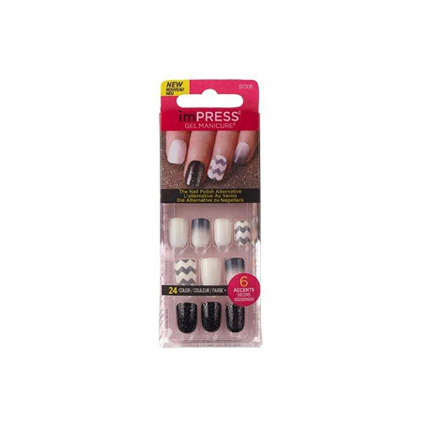 imPRESS unghie autoadesive waterproof. La confezione include: 30 unghie (24+6 decorate), 1 salvietta detergente, 1 mini lima.