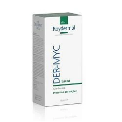 Roydermal DER-MYC Lacca Climbazolo Protettivo per unghie Dispositivo Medico CE di classe I. Lacca per unghie di mani e piedi con tendenza alle onicomicosi. Per la proprietà filmogena del preparato, DER-MYC lacca svolge un’efficace azione protettiva che previene e contrasta la proliferazione della componente micotica. Modalità d’uso Applicare una volta al giorno, preferibilmente la sera, con apposito applicatore e lasciare asciugare per qualche minuto. Rimuovere eventuali smalti precedentemente applicati. Componenti C11-C12 isoalkanes; cyclomethicone/ cyclopentasiloxane; ethyl acetate; glycine soja oil; dimethicone; cera alba (beeswax); palmitic stearic triglyceride; cyclopentasiloxane; trimethylsiloxysilicate; aqua (water); alcohol/isopropyl alcohol; climbazole; melaleuca alternifolia (tea tree) oil; undecylenic acid; keratin; urea; retinyl palmitate; ascorbic acid; BHA BHT; fragrance. Avvertenze Uso esterno. Agitare prima dell’uso. Richiudere bene il flacone dopo l’apertura. Evitare il contatto con gli occhi. Tenere fuori dalla portata dei bambini. Tenere lontano da fonti di calore. Conservazione Una volta aperto il prodotto utilizzare entro e non oltre 6 mesi. Formato Flacone da 4 ml. Cod. 2005