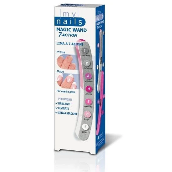 MY NAILS MAGIC WAND 7ACTION : Prodotto indicato per avere rapidamente unghie sempre perfette. Il prodotto è estremamente pratico: accorcia e arrotonda le unghie, uniforma lo spessore ed elimina le irregolarità.Inoltre toglie le macchie causate da fumo, detersivi e coloranti, ridonando lucentezza e setosità alle unghie.