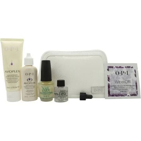 OPI Nail Envy Manicure Confezione Regalo 6 pz contiene: 50 ml Avoplex High-Intensity Crema Mani & Unghie; 30 ml Avoplex Trattamento Cuticole Esfoliante; 15 ml Original Nail Envy Natural Rinforzante Unghie; 9 ml DripDry Gocce Seccanti Smalto; 10 Wipe-Off! Acetone-Free Salviette Struccanti Unghie; borsetta cosmetici.