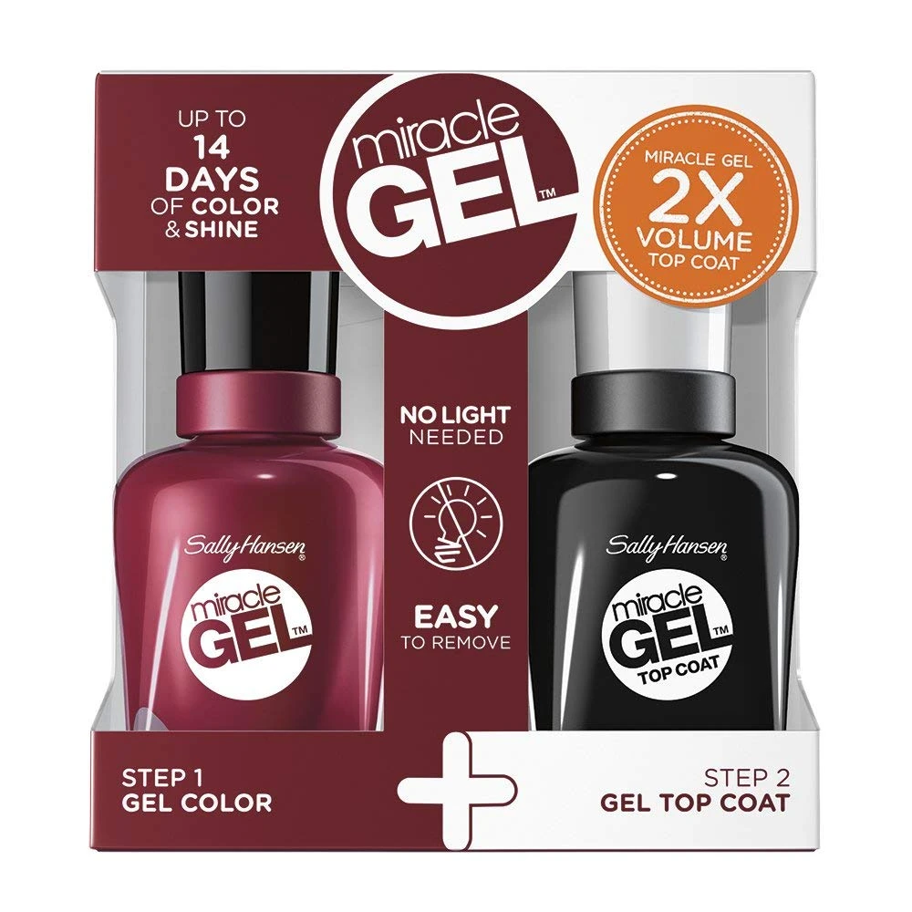 Sally Hansen Miracle Gel Duo Kit Smalto in 2 Step, Lunga Tenura Fino a 14 Giorni 601 Dig Fig – Gel Color + Top Coat